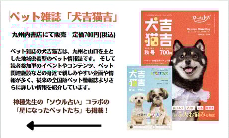 ペット占い(ソウル)2021年3/1よりペット雑誌「犬吉猫吉」さんとコラボ「星になったペット達」X[ソウル占い」連動企画スタート